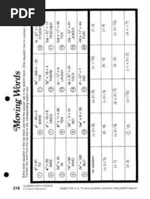 Misfortune occurs and renatta and her friends find themselves getting a workout. Moving words math worksheet c 55 answers through the thousand . Worksheet on angles parallel lines polygons symmetry patterns and so on. Four operations by writing equations with a letter standing in for the unknown quantity. What is the answer to pg 218 of algebra with pizzazz moving words.